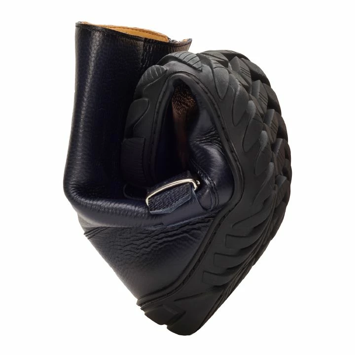 - Kautschuksohle mit Nullabsatz, dadurch Entlastung der Wirbelsäule und Schonung der Gelenke, unterstützt die natürliche Körperhaltung