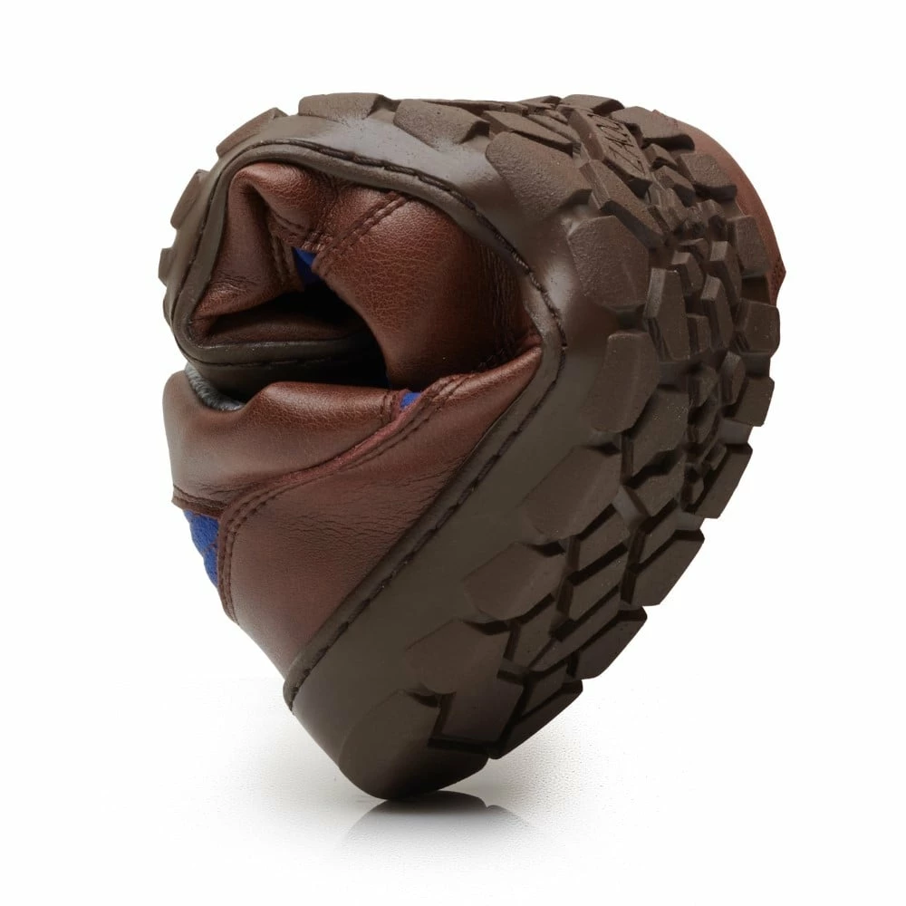 Der schicke Barfußschuh zum Schnüren besticht durch die natürliche und gleichzeitig moderne Farbkombination aus Braun und Blau. Auch der niedrige Schaft ist so geschnitten, sodass Deine Knöchel gut gestützt werden auf längeren Wegen und ein Umknicken verhindert wird.