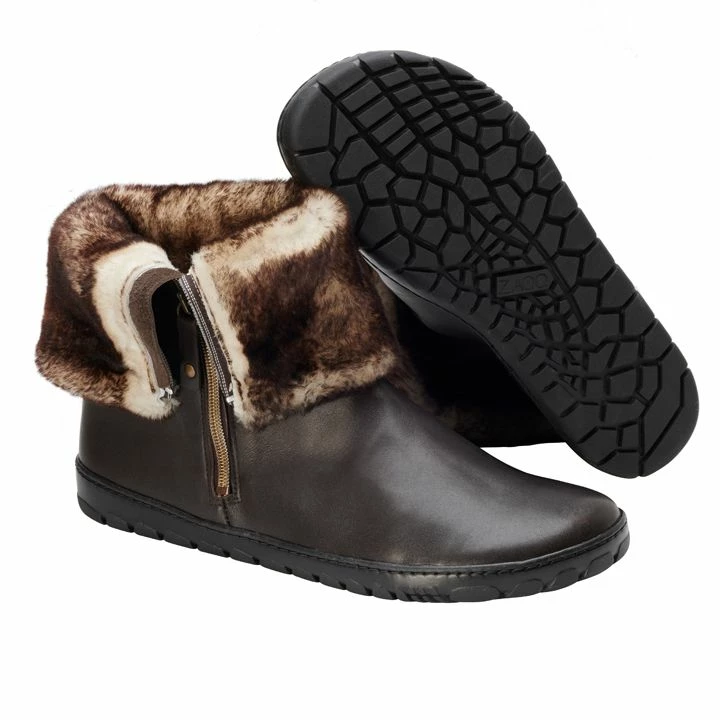 Das dunkelbraune Veloursleder als Obermaterial und das Fellimitat als Futter, verleihen dem Barfuß Stiefel ein feines und elegantes Erscheinungsbild. Die Kautschuksohle dient mit ihrer Flexibilität und dem integrierten Nullabsatz bei jedem Schritt für absoluten Geh-Komfort und eine Entlastung der Wirbelsäule.