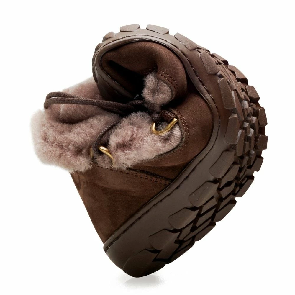 In dem unteren Bereich haben wir hochwertiges Nubukleder per Hand an die Barfußsohle gestrobelt. Damit ist der Winterstiefel äußerst robust, stabil und langlebig. Im oberen Bereich besteht unser HYGGELIQ aus kuscheligem Lammfell. Dadurch bekommt der Barfußstiefel seinen unvergleichlichen Look. Am liebsten würdest Du ihn gleich streicheln, oder? Über die Schnürsenkel, die sich dezent im hohen Lammfell verstecken, kannst Du den halbhohen Stiefel enger schnüren oder bei Bedarf weiten. So sitzt er immer perfekt an Deinem Fuß. Kalte Füße gehören der Vergangenheit an, mit HYGGELIQ bist Du von der Sohle bis zur Wade kuschelig warm verpackt.