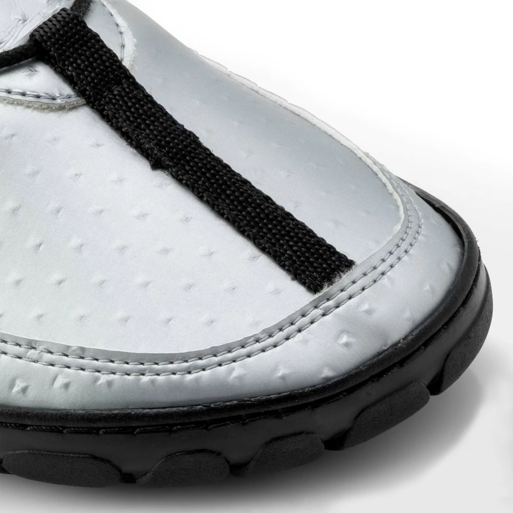 Selbstverständlich zeichnet sich der Barfuß-Sneaker nicht nur durch optische Reize aus. JAQ Silver überzeugt auch durch Funktionalität. Die dünne Kautschuksohle ist besonders flexibel, um Dir bei jedem Schritt das entsprechende Barfußgefühl zu geben. Zudem ist der Sneaker besonders leicht und atmungsaktiv. Auf ein Innenfutter haben wir absichtlich verzichtet, um Dir auch an heißen Sommertagen einen perfekten Begleiter an die Seite zu stellen. Trotz seines spacigen Designs haben wir komplett auf Metallteile verzichtet.