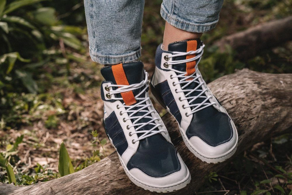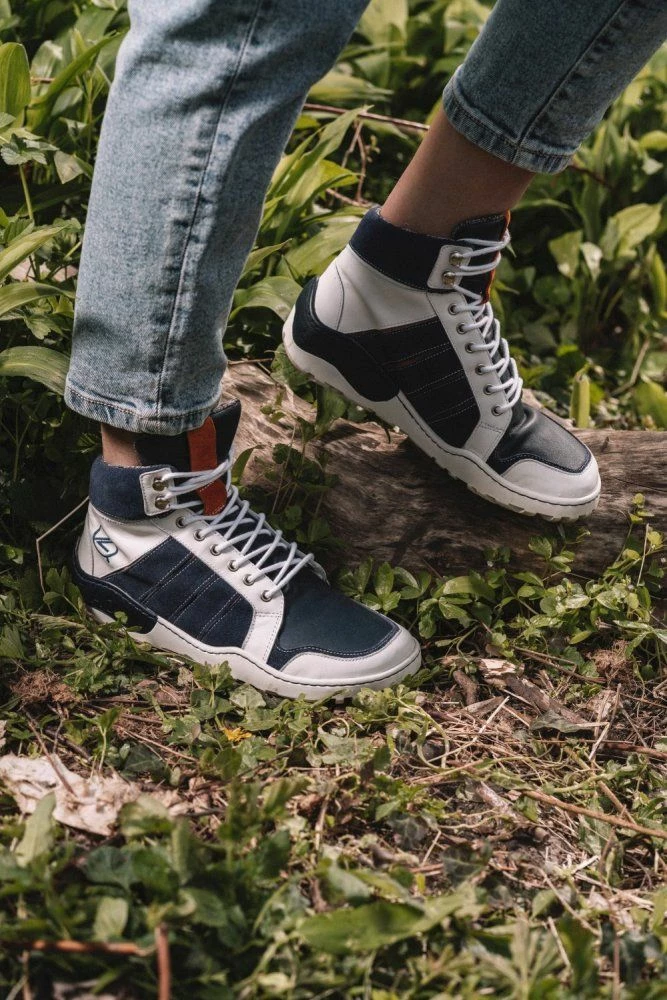 Feines Nappaleder in weiß und blau, welches mit feinem Veloursleder an den Seiten abgesetzt ist, gibt diesem Outdoorschuh den frischen Look. Einmal angehabt, willst Du keinen anderen Wanderschuh mehr tragen. Herrlich leicht und anschmiegsam wirst Du diesen Barfußschuh kaum an Deinen Füßen spüren.