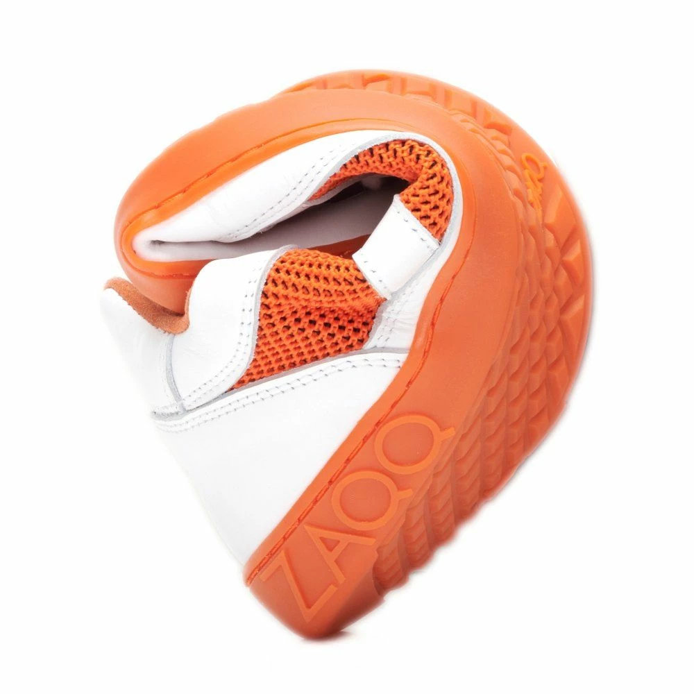 Der Barfuß-Sneaker sorgt mit seiner Farbkombination aus Weiß und Orange für den extravaganten Auftritt. Das macht ihm keiner so schnell nach. Trotzdem ist OAQLEY überhaupt nicht aufdringlich, das Design ist schick und topaktuell.