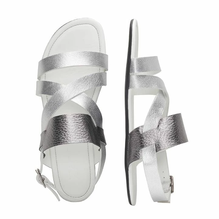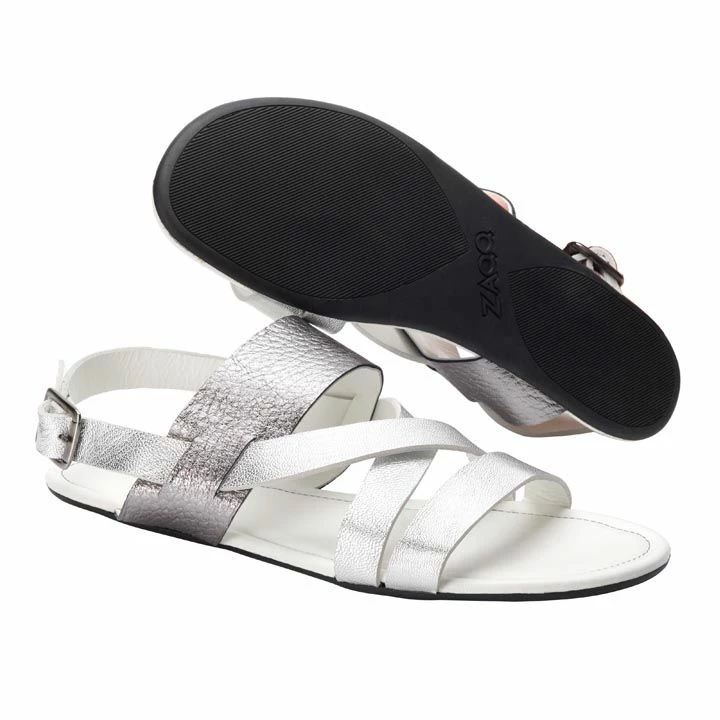 Unsere Barfuß-Riemchensandale PERLAQ Silver wird Deinem Sommerlook einen besonderen Glanz verleihen.