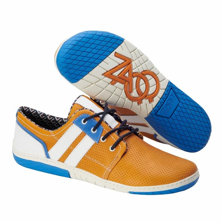 QANBERRA Orange ist der farbenfrohe Sneaker in Orange mit weißen und blauen Details – ein wahrer Hingucker für den modernen Mann.