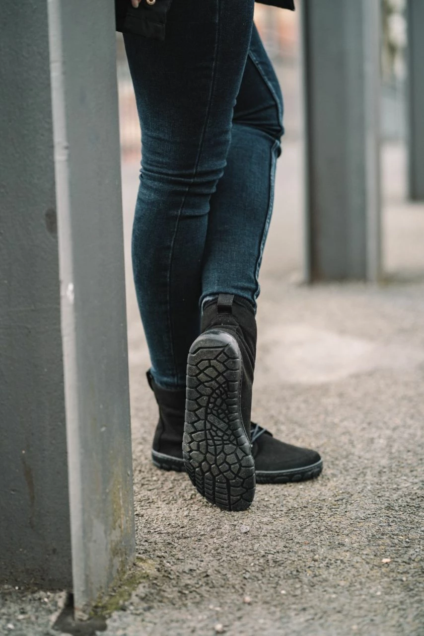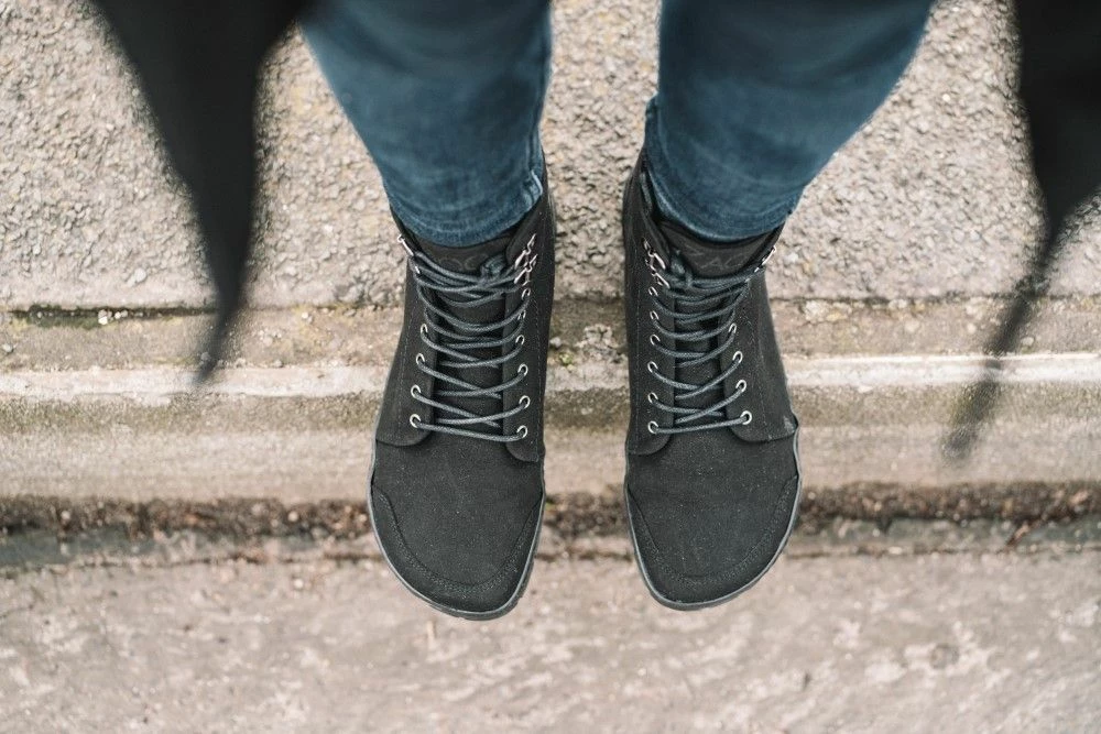 Der hoch geschnittene schwarze Sneaker überzeugt einfach durch Design und Funktionalität. Kein Wunder also, dass dieser Barfußschuh so beliebt ist. Die hochwertige Microfaser fühlt sich sowohl von außen als auch von innen wunderbar soft an. Sie lässt Deine Füße atmen und sorgt für optimalen Temperaturausgleich. Und nicht nur das, Deine Füße haben Dank der breiten Zehenbox auch die maximale Bewegungsfreiheit. Die dünne und flexible Barfußsohle sorgt dafür, dass Deine Fußmuskulatur richtig arbeiten kann, sie ist aber auch rutschhemmend und besonders abriebfest.