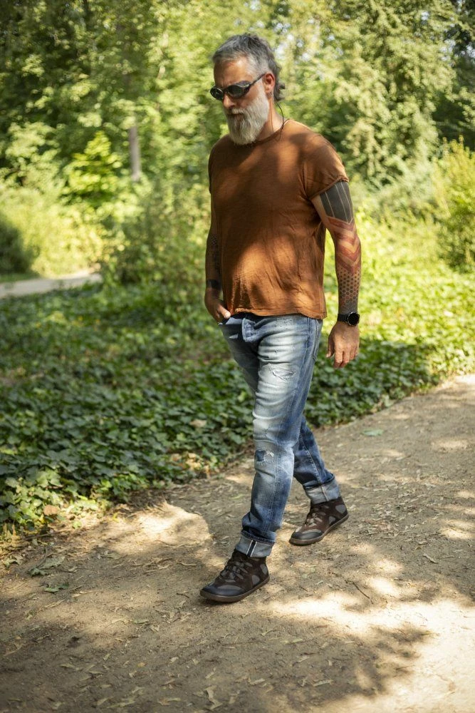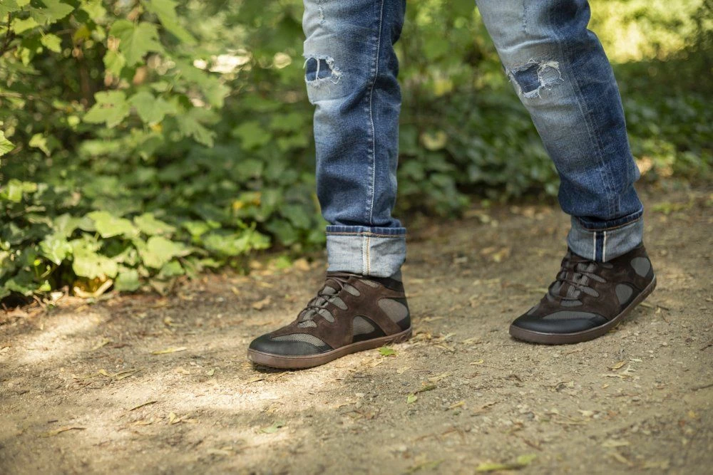 Für QINSLEY haben wir ein besonders atmungsaktives Meshgewebe gewählt, welches auch auf langen Touren für ein angenehmes Fußklima sorgt. In Verbindung mit dem dunkelbraunen Veloursleder sieht dieser Barfußschuh einfach klasse aus und ist zudem äußerst robust.