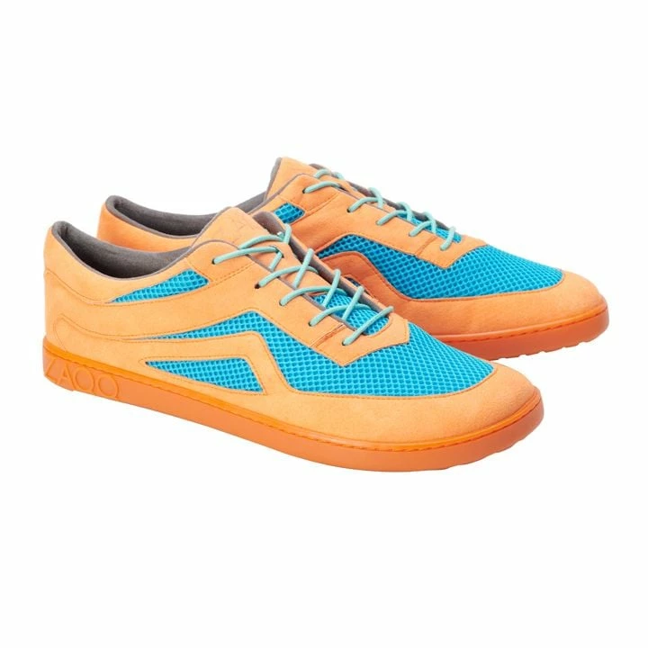 Gegensätze ziehen sich an? Im Fall von QLAYTON Orange ist die Antwort definitiv: Ja! Unser Barfuß-Sneaker präsentiert sich Dir in den Komplementärfarben Orange und Blau. Dieser hervorragende Kontrast sorgt für einen leuchtenden Look.