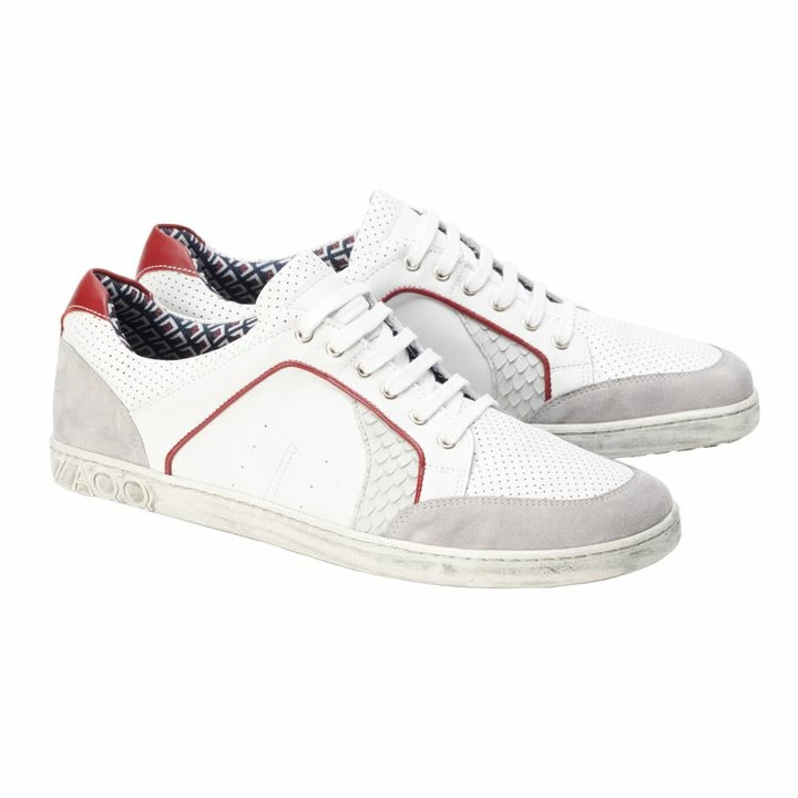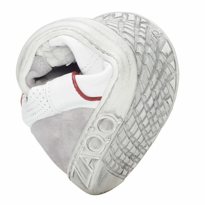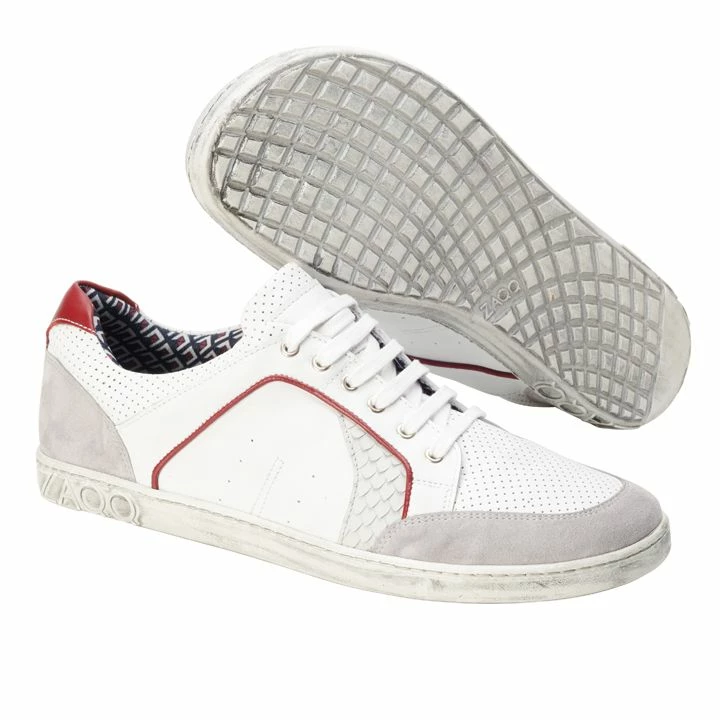 Der Materialmix ist absolut einzigartig, auffallend und gleichzeitig stilvoll. Im vorderen und hinteren Bereich haben wir robustes Veloursleder vernäht, welches dem Barfußschuh Stabilität und Langlebigkeit gibt. Für eine hohe Atmungsaktivität sorgt das perforierte Nappaleder und macht diesen weißen Sneaker damit zum perfekten Begleiter in der wärmeren Jahreszeit. An den Seiten zeigt sich unser QLERQ durch das Leder in Schlangenoptik sowie der feinen roten Linie ultramodern und lässig.
