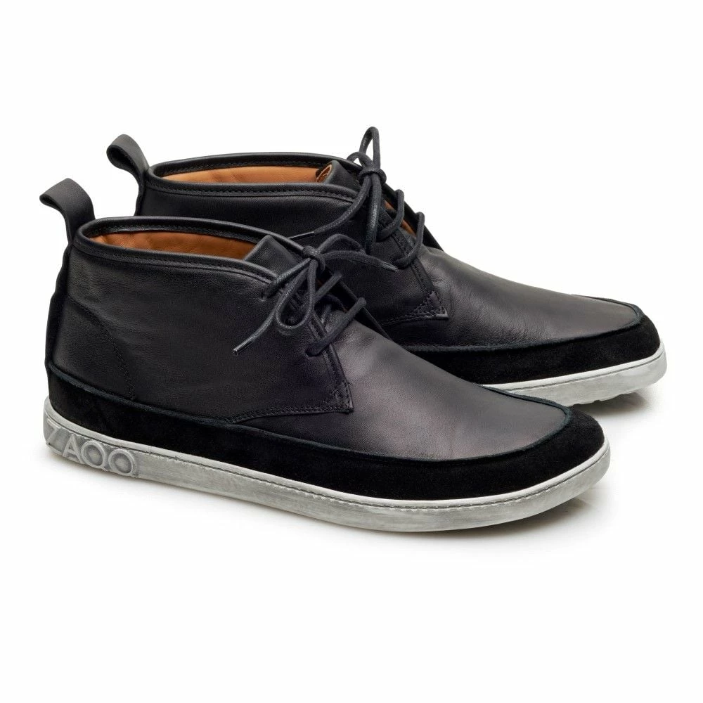 Das Obermaterial Deines Barfußsneakers QUITMAN besteht aus hochwertigem, schwarzem Nappaleder mit einem besonderen Veloursdetail, welches den Schuh optisch so ansprechend macht: direkt oberhalb der Sohle haben wir rundherum ein Element aus fein geschliffenem Veloursleder aufgenäht. Dadurch wirkt der Schuh im vorderen Bereich schmaler. Tatsächlich bietet er jedoch im Vorderschuh viel Volumen für Deine Zehen und Ballen.