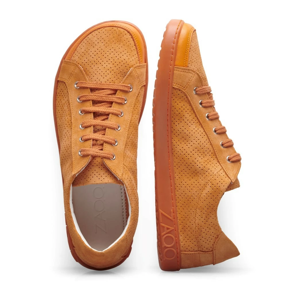 Doch nicht nur die sommerliche Farbe Orange überzeugt, auch das Obermaterial aus hochwertigem, fein perforiertem Veloursleder ist ein wahrer Hingucker und sorgt für eine optimale Luftdurchlässigkeit. Die Sohle aus Kautschuk mit den typischen ZAQQ Eigenschaften, sorgt für das perfekte Barfuß-Gefühl und höchsten Tragekomfort.