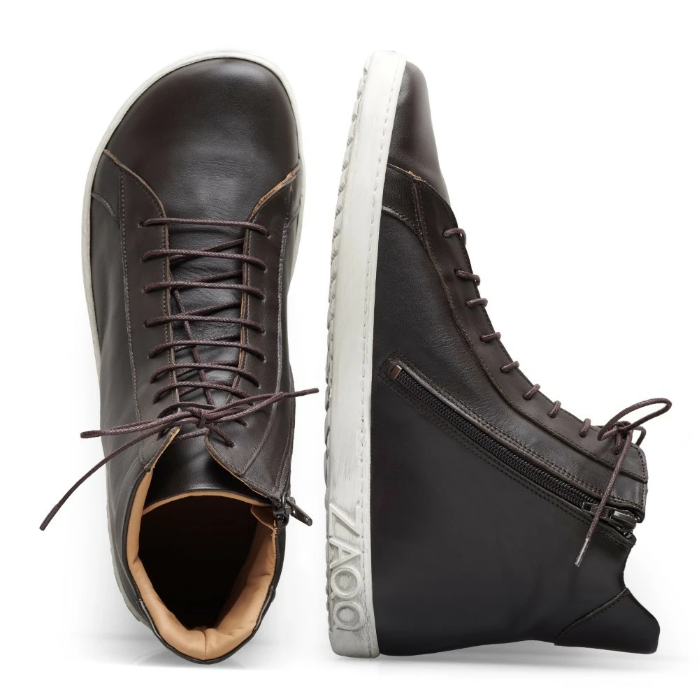 Du hast Lust auf einen Barfußschuh, der gleich zwei Trends in sich vereint? Dann stellen wir Dir unseren SNAQ Dark Brown vor. High-Top-Sneakers und Modelle im Retro-Look sind derzeit total angesagt.