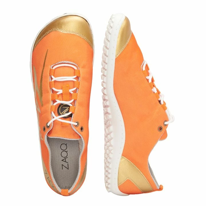 Dynamisch, sportlich, nachhaltig, feminin – das ist unser SQIM Orange Gold. Dieser Barfußschuh steckt voller Überraschungen!