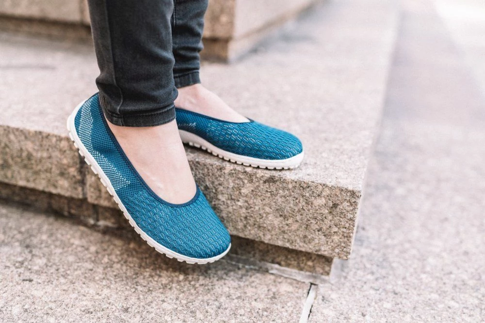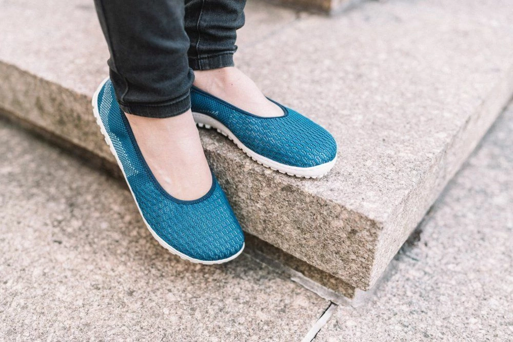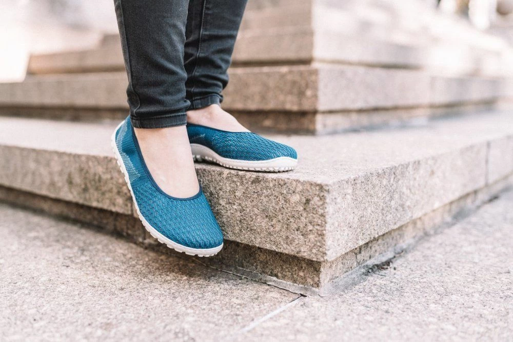 SUQAR Mare ist unser blauer Ballerina aus Baumwoll-Strickgewebe, der luftiger nicht sein könnte. Dieser Barfußschuh wird mit seinem Komfort und seinem femininen Design garantiert Dein liebster Begleiter durch die warmen Tage des Jahres.