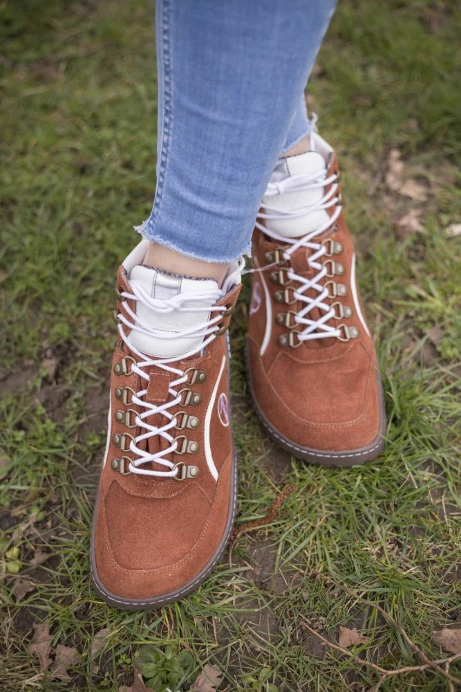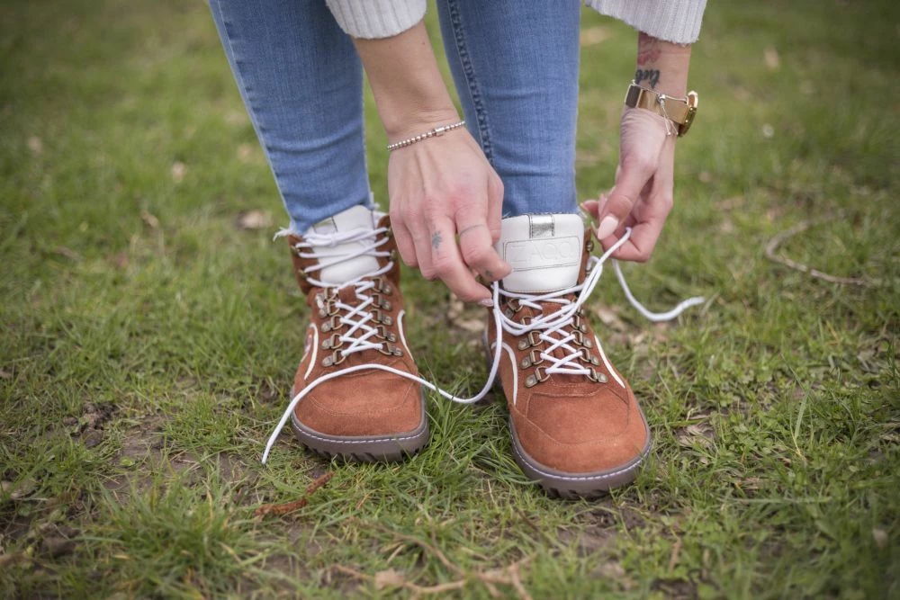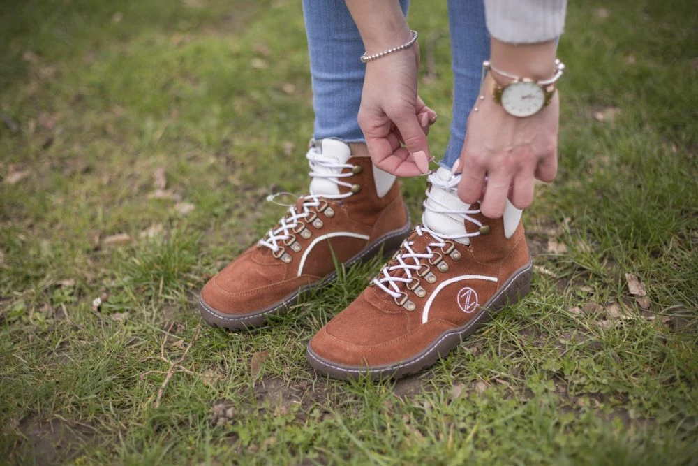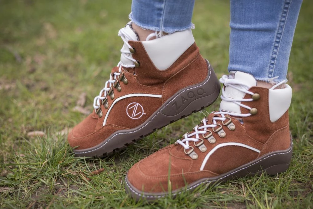Als Obermaterial verwenden wir hochwertiges Veloursleder in einem warmen cognacfarbenen Ton und geben dem Barfußschuh mit den weißen Nappaledereinsätzen und Schnürsenkeln einen ultramodernen Look. Von innen verwöhnt Dich unsere anschmiegsame ZAQQ Membran mit höchstem Tragekomfort. Mit ihrer hohen Atmungsaktivität sorgt sie für ein angenehmes Fußklima und ist gleichzeitig zu 100% wasserdicht.